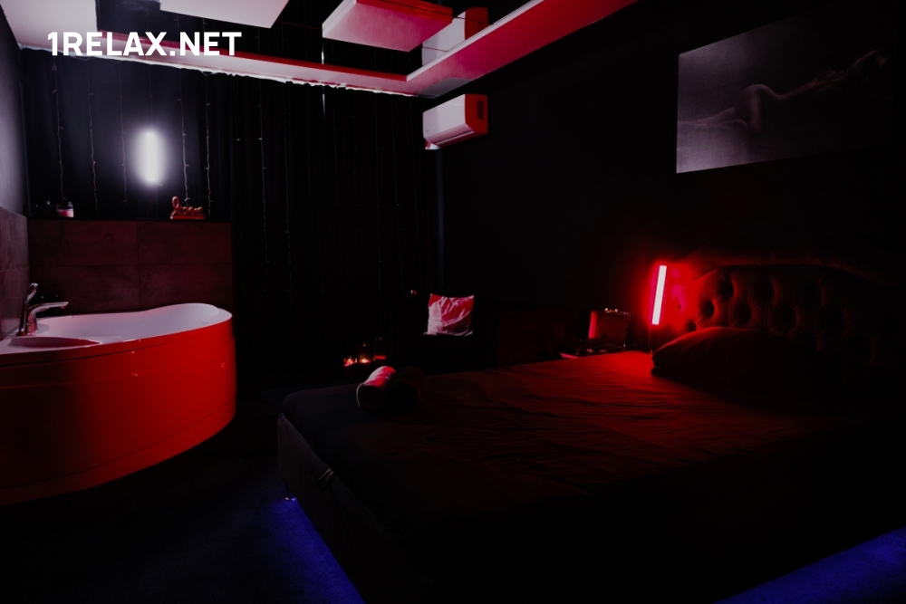 В каждой комнате есть комфортная большая кровать, приятная подсветка, все необходимые аксессуары. Для водных процедур к услугам гостей душ или вместительная ванна на двоих, в которой так приятно понежиться в компании с красивой девушкой.